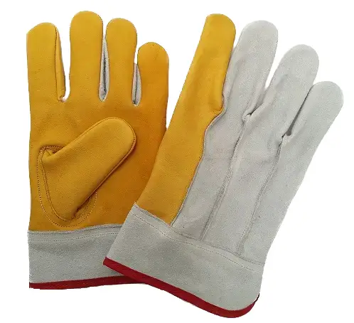 El guante medio operador fabricado en palma de piel de res curtida al cromo, y el dorso y puño de carnaza,